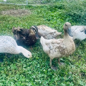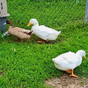 We're thrilled to welcome Amelia, Stevie, Lisa, Meg, and Julie - five beautiful ducks from three different breeds. They joined us from a caring family who could no longer keep them safe from nearby hawks. With French Rouen, English Khaki Campbell, and Welsh Harlequin roots, this diverse group reminds us that no matter where they come from, ducks thrive with love, safety, and plenty of quacks!